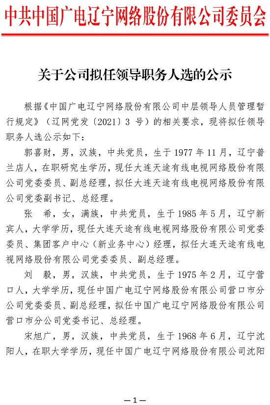 中國廣電遼寧網(wǎng)絡(luò)股份有限公司(簡(jiǎn)稱中國廣電遼寧公司)前身為成立于2010年2月的北方聯(lián)合廣播電視網(wǎng)絡(luò)股份有限公司,系中央國有文化企業(yè)——中國廣電網(wǎng)絡(luò)股份有限公司省級(jí)子公司、遼寧省國有文化高新技術(shù)企業(yè),是按照現(xiàn)代企業(yè)制度打造的集網(wǎng)絡(luò)建設(shè)、傳輸、運(yùn)營(yíng)及多功能開發(fā)與應(yīng)用為一體綜合網(wǎng)絡(luò)運(yùn)營(yíng)商。